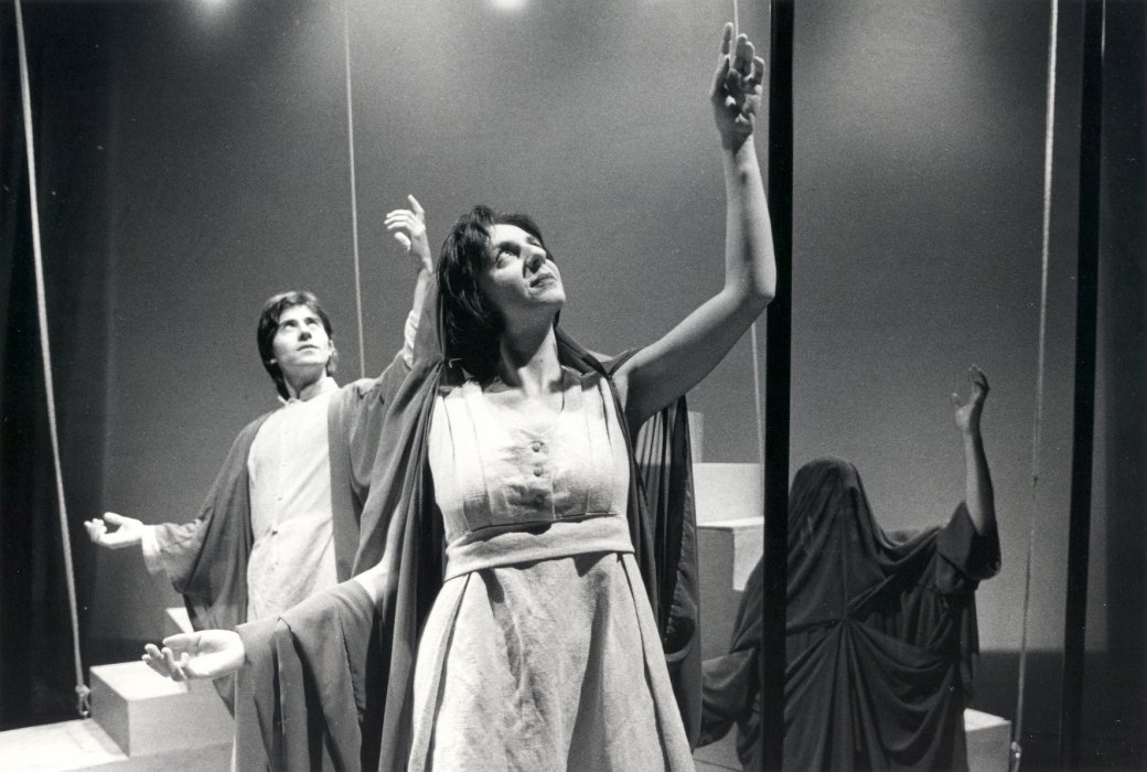 So che Gloria ha a che fare col nascere (dei bambini) e col germogliare (delle erbe, degli alberi) -e che la gloria è per me la luce del vedere (teatro è vedere) il cammino umano costellato dalle immagini (ombra / angelo / cenere / fuoco / sabbia / mare / foresta / lupo / fulmine / montagna) dietro cui si svela il sentiero. Sentiero che il bambino germoglio nascendo ogni volta costruisce (sentiero è la vita che nasce -vegetale e carnea). I tre attori (per tre attori mi ha chiesto di scrivere la committenza) su questo sentiero camminano, come un DNA teatrale (non è un sentiero il DNA?) alla ricerca della porta del tempo.