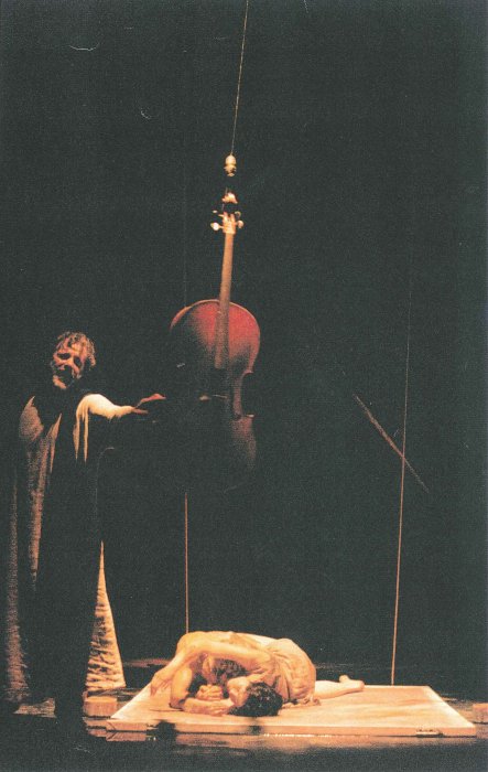 locandinaIspirandosi a quel capolavoro cinematografico che è Andrej Rublev, del regista russo Andrej Tarkovskj, Tam Teatro Musica prosegue con Il sogno di Andrej la sua ricerca su un teatro che sia in rapporto continuo, fluido, fertile con le arti visive e la musica, suonata dal vivo sulle corde di un violoncello. La figura del monaco pittore di icone ispira in questo caso un teatro di visioni, di sogni, di sequenze di interni mentali per flash e frammenti, in cui pittura e racconto si incontrano per trovare un loro nuovo equilibrio. La pittura diventa allora tempo del teatro mentre le tele che dominano la scena, bianche all’inizio dello spettacolo, si colorano via via in un trittico che si prolunga anche sul corpo degli attori, mescolando sacro e profano, spirito e materia.