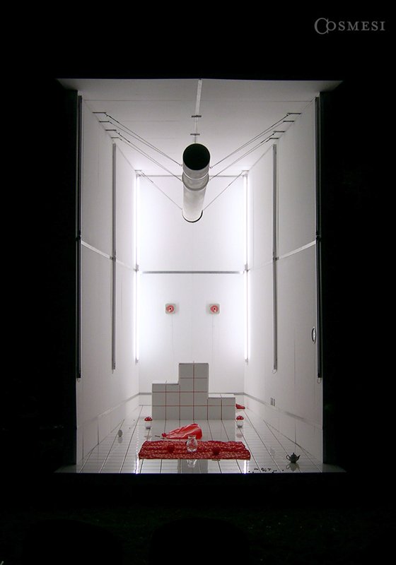 In bilico fra installazione e performance,la ricerca teatrale di Cosmesi sperimenta un'idea di spazio teatrale in cui un'attrice, sola sul palco, si muove verso il “cedimento strutturale” della scena.
