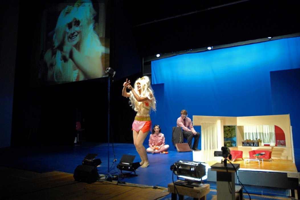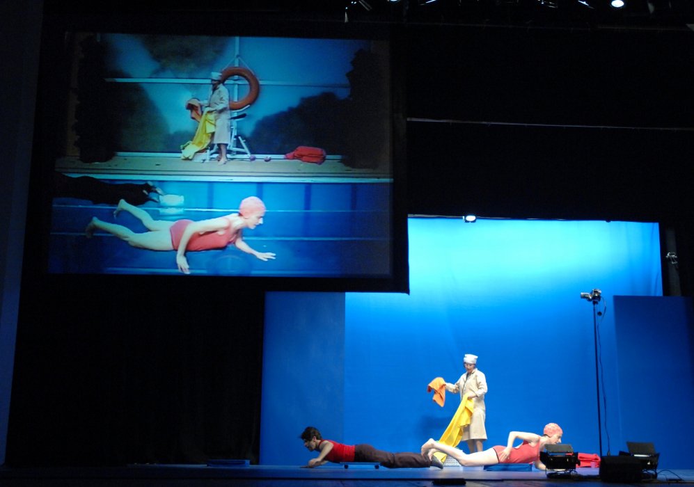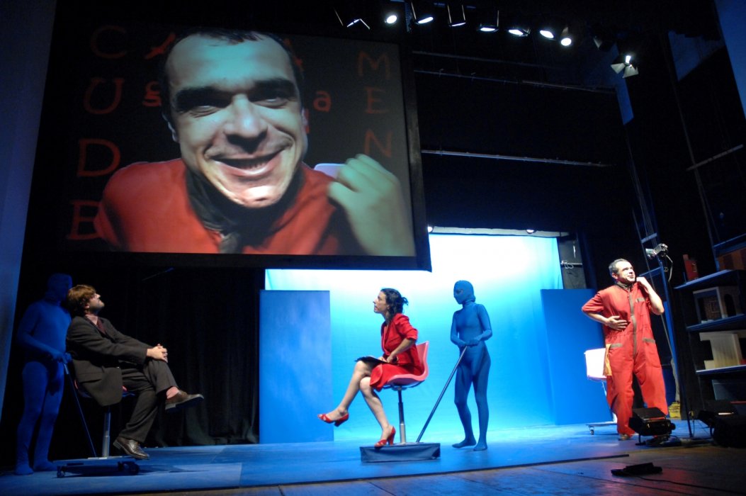 Tra la terra e il cielo ci fa ritrovare Giorgio Barberio Corsetti e la sua ricerca sulle interazioni fra presenza e immagini, realtà e immaginazione, dove la tecnologia si mette al servizio di un tema metafisico, l’eterna lotta fra bene e male. Dopo averla sperimentata per una sua regia lirica accolta come una ventata di novità nel panorama operistico, Corsetti si affida alla tecnica del chroma-key, un set in campo blu creato per effettuare riprese video che permettono di ambientare le azioni degli attori nelle scenografie virtuali più varie, create con modellini o riprese a vista e proiettate su schermo. Una realtà creata per coinvolgere il pubblico in molteplici visioni, con un montaggio che avviene in diretta sotto i nostri occhi, in un gioco che svela anche i suoi effetti speciali. E questo mentre diavoli spuntano da sottoterra e angeli volano dal cielo, catapultandosi all’improvviso in una banale giornata di quattro persone - un uomo ed una donna arrivati e pieni di certezze, un ragazzo e una ragazza agli inizi della loro lotta per la sopravvivenza, pieni di incertezze. E alla fine di questa giornata nessuno di loro sarà più lo stesso...