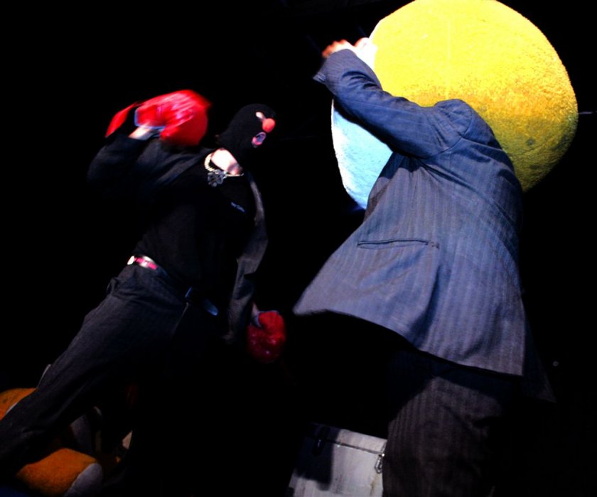 Due clowns acidi, un musicista e un mucchio di oggetti si abbandonano alle loro fantasie ludiche non meno che al loro istinto nero. Ne viene fuori un disordinato mosaico di libertà e frustrazione, risate viscerali e pugni allo stomaco, poesia tramutata in sangue e stupidità estremizzata fino a divenire pensiero.