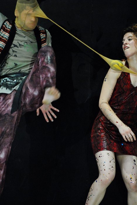 L’immaginario creato sulla scena è il risultato dell’interazione fra cinque individualità che cercano di andare oltre ai limiti di un torpore indotto che ci rende tutti più insensibili.