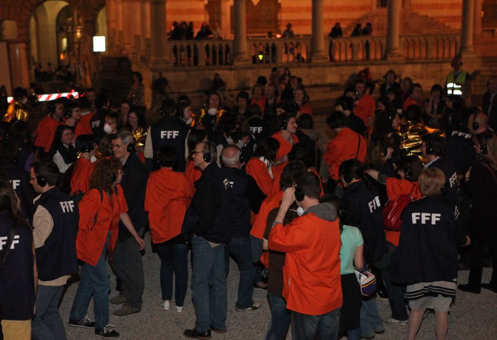 Il pubblico con cuffie si potrà mescolare ai passanti senza interferire nella riuscita dello spettacolo.