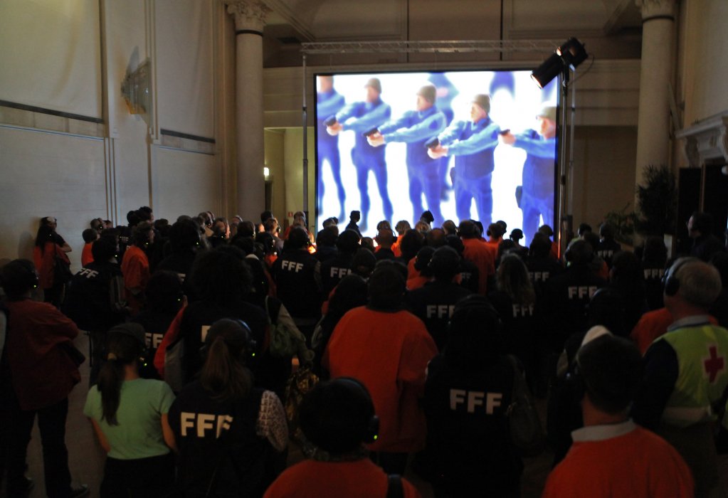 Il rapporto fra attori e spettatori, realtà e finzione, è prepotentemente al centro di questo spettacolo catalano che conclude, sul suolo pubblico, in una piazza della nostra città, la stagione di Contatto. Una voce da ascoltare in cuffia guida un centinaio di spettatori nello spazio a costruire una drammaturgia di azioni e reazioni, impartendo istruzioni, suggerimenti, domande precise, a volte ironiche, innocenti, altre più intime e importanti sul senso della vita. Attraverso micro comunità che si creano spontaneamente, il regista catalano Roger Bernat orchestra una bizzarra fiction su temi che sempre di più ci riguardano e di cui siamo protagonisti senza costrizioni e ruoli prefissati.