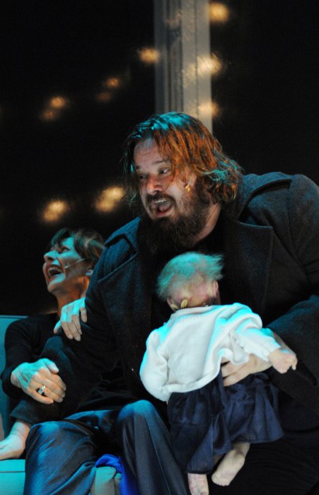 La coppia più sanguinaria dell’opera del Bardo pur di non fare i conti con la solitudine, il grigiore di vite digerite su divani ikea, fra continui sogni e desideri abortiti, si realizza dando libero sfogo a istinti di violenza insensata. Giuseppe Battiston e Frédérique Loliée (la splendida Elettra dello stesso De Rosa vista a Contatto qualche stagione fa) interpretano i due sanguinari sintonizzandosi sul ritmo inesorabile di un autoannientamento, in un’orgia di risate senza senso, incubi alcolici, sguardi inebetiti persi nel buio dell’anima.