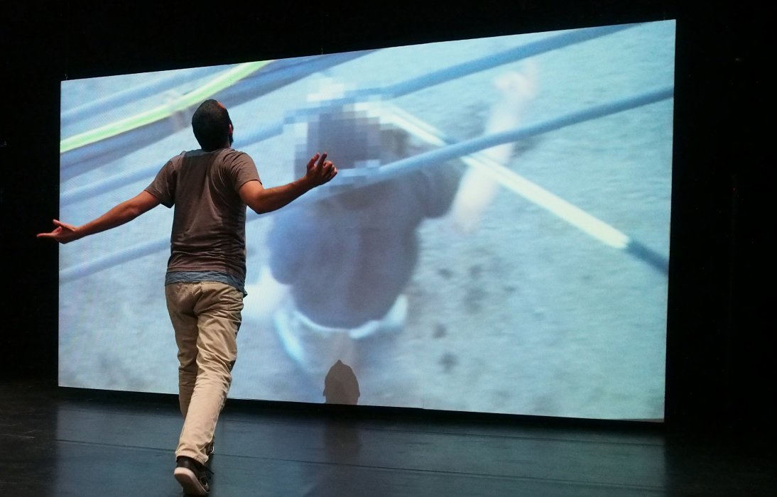 Il coreografo israeliano Arkadi Zaides riguarda con noi su grande schermo alcuni momenti di quei video, mentre il suo corpo a poco a poco si avvicina, si ingloba e “archivia” in sé quelle sequenze, fino a riprodurre le azioni e le reazioni contenute in quelle immagini.