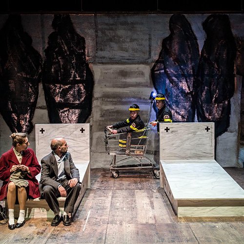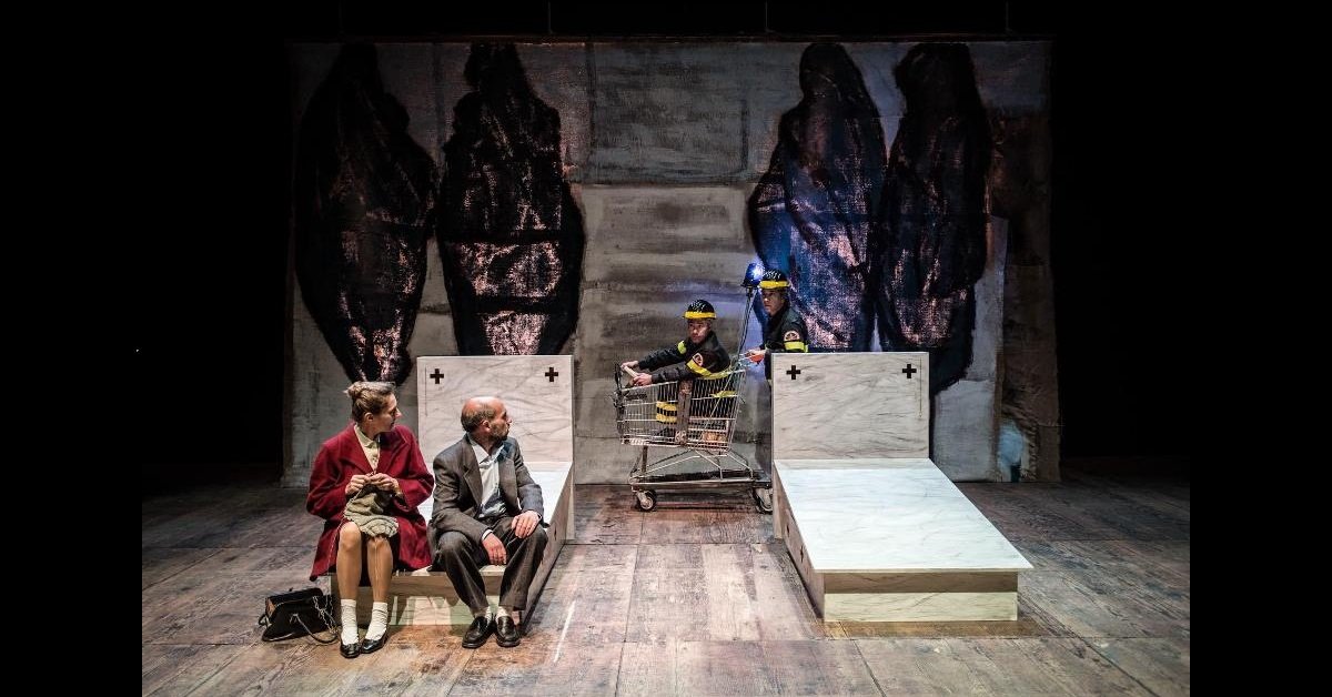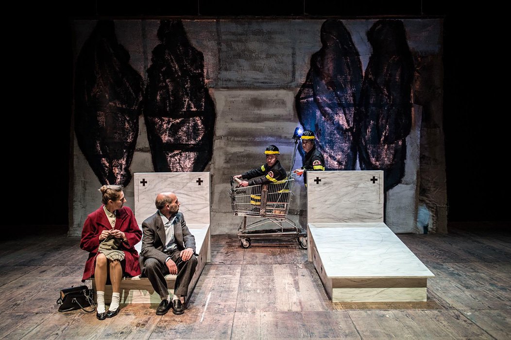 Quattro figure si muovono fra le tombe in un tempo sospeso, forse nell’ultimo giorno di vita.  Dialoghi quotidiani e surreali, ritmi serrati che intercettano relazioni, attenzioni e richieste fisiche che celano necessità, sul limite tra la verità e la tragedia del quotidiano.