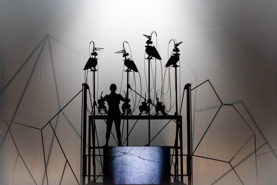 Il canto della caduta pone punti interrogativi propri anche del nostro tempo: una risposta, possibile, sta forse fra le pieghe di un’antica storia ladina, il mito dei Fanes, un regno pacifico di donne, distrutto dall'inizio di un'epoca del dominio e della spada. Uno stormo di corvi animatronici e una piccola comunità di bambini-pupazzo superstiti, ispirati alla street art di Herakut, sono i nuovi compagni di scena della straordinaria Marta Cuscunà, in un nuovo viaggio di resistenza.