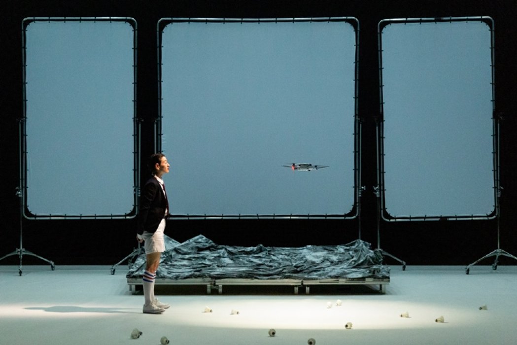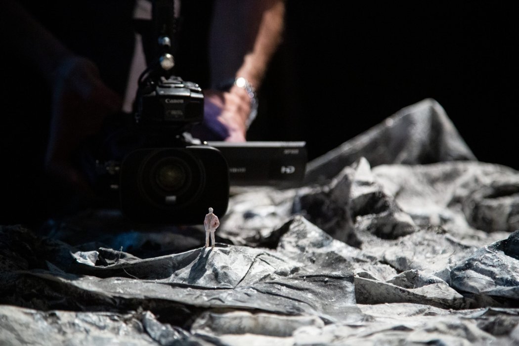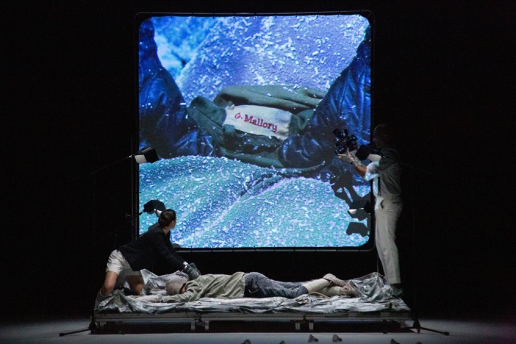 In una scena fatta di praticabili, piedistalli, luci, proiettori, computer e grandi schermi, un po’ set televisivo, esposizione sulla storia dell’alpinismo e una stanza piena di hacker, The Mountain si nutre di interrogativi che ci riguardano, che scandagliano il rapporto fra senso del reale, verità e la costruzione di narrazioni che solo sembrano vere, come le fake news del nostro tempo.