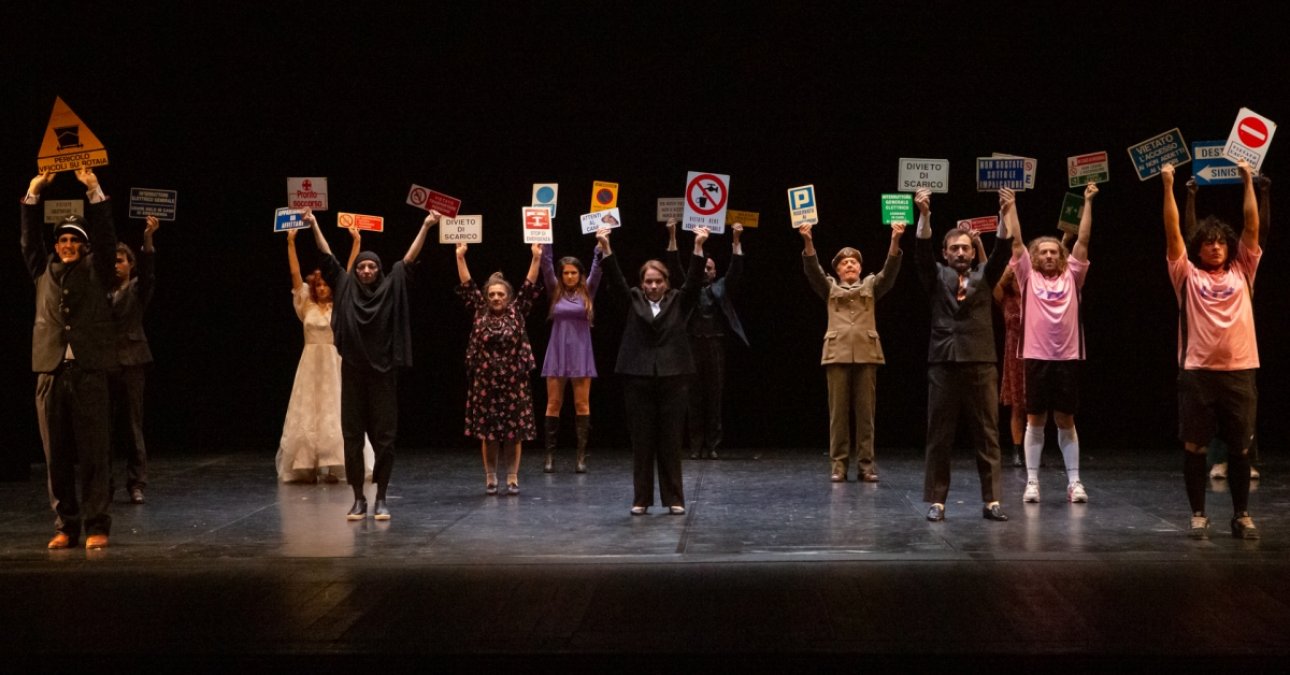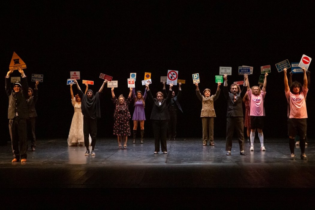 Lo spettacolo racconta i momenti di una giornata qualunque in cui una comunità si sveglia, si prepara ed esce di casa per affrontare il mondo. Dalla sveglia mattutina, in un crescendo animato di suoni, parole e gesti, senza una trama precisa si susseguono accadimenti legati al presente. C’è un ferroviere, c’è la donna ucraina che scappa dai bombardamenti, c’è il migrante che arriva dal Congo, c’è il militare che esalta la guerra, ci sono due innamorati che si promettono amore ma lei non si decide a sposarlo, c’è una famiglia religiosa, una donna iraniana, due calciatori del Palermo, c’è lo stupro del branco, il mercato, il lungo elenco dei divieti, c’è il grido di protesta e il canto di speranza. Tutti si ritrovano per strada, fuori dalle mura di casa, per vivere insieme le meraviglie e le miserie della vita. Prima su un treno, poi in una piazza, in una chiesa, al bar, poi di nuovo per strada, al freddo, al caldo, in un posto non sicuro dove un attentato semina il panico fino ad arrivare al mare in un naufragio collettivo.