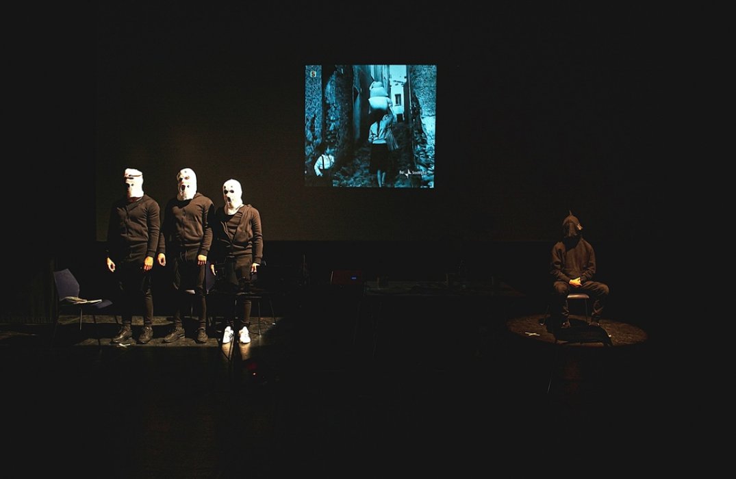 Per dipanare e ritessere compulsivamente questo groviglio, anonimasequestri evita di battere le strade del folklore e della reminiscenza, intersecando invece diversi piani di realtà, livelli di presentazione e rappresentazione, meccanismi metateatrali che portano a continui slittamenti – il tutto mettendo in campo una relazione col pubblico che è qui e ora, frontale, diretta, ma anche narrata, evocata, popolata di personaggi improbabili e delimitata da sollecitazioni video in continuo rimbalzo fra presa diretta e archivio. (…)