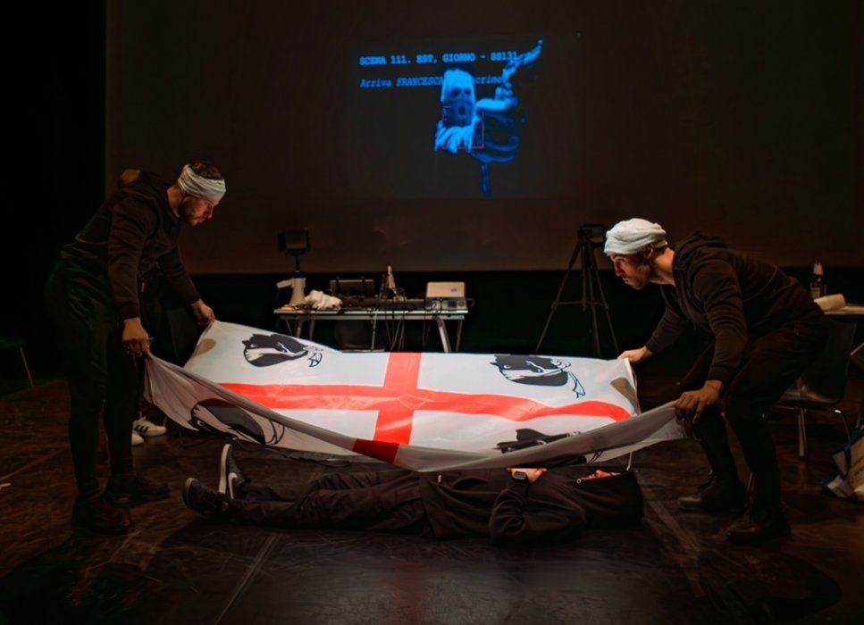 Il gioco è serio e feroce, i componenti del gruppo dosano leggerezza e profondità, usano l’ironia non come scorciatoia verso la platea o come posizionamento cinico e consolatorio, ma piuttosto come mezzo di distacco analitico, come innesco di una risata cognitiva, quella che ride domandandosi cosa c’è da ridere: osservandoli non abbiamo modo di capire se per loro la sardità è appartenenza, trauma, orgoglio, vergogna, nevrosi o tutte queste cose e molte altre insieme.