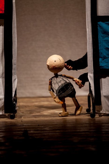 OUT è uno spettacolo visuale, multidisciplinare, un’originale fiaba di formazione raccontata attraverso il linguaggio immaginifico del teatro di figura, un’opera poetica per adulti, che può essere vista anche dai bambini. Un viaggio iniziatico che conduce il protagonista fuori dalla casa, metafora delle certezze, per metterlo in relazione col mondo e con i suoi inevitabili contrasti. Il linguaggio poetico delle diverse tecniche utilizzate trasporta il pubblico in una dimensione onirica, trasmettendo il suo messaggio universale attraverso l’uso di archetipi.
