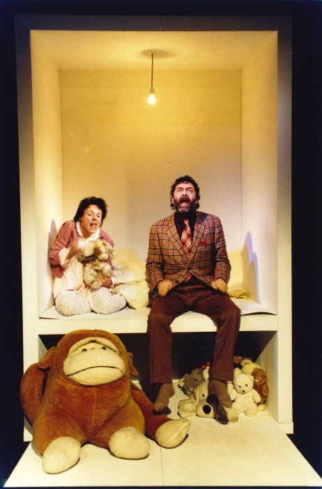 locandinaUn padre e una figlia dividono da una settimana un piccolo letto da bambini dove lei ha trascorso gli ultimi dieci anni, persi nel centro di un enorme labirinto che sembrerebbe senza vie d’uscita: “Come un cestino per la merenda con dentro due umani e la loro casa!”. Assistiamo a due flussi contrapposti di parole: parole che ci invitano ad uno spettacolo efferato e amaro, che ha una sua natura segreta. Lui parla frenetico del suo straordinario passato come commerciante di mobili e rappresenta i ricordi del passato da solo o aiutato da lei; lei, poliomielitica, un mondo interiore che esplode, un cumulo di dolore, parla non meno sconvolta, per riempire il silenzio terribile dentro la sua testa. Padre e figlia non possono smettere di parlare. Il linguaggio è una risorsa vitale. È come il respiro che li tiene in vita.