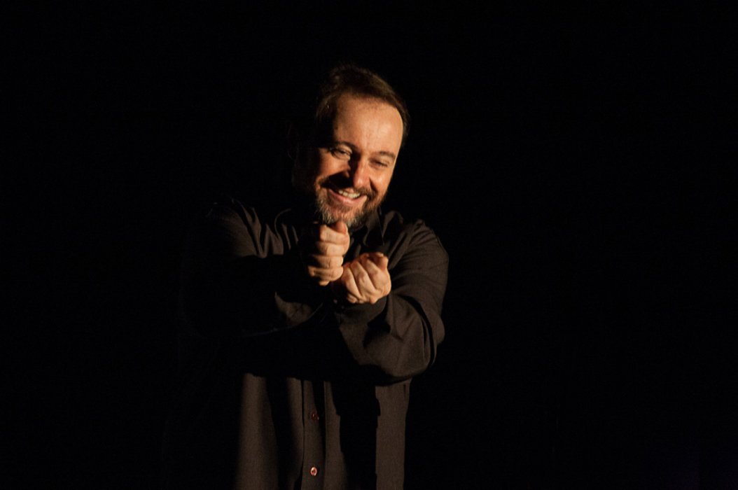 Natalino Balasso in Stand up s’aggrappa, senza capitombolare nè scadere, su estremità lessicali a cui ci si abitua alleandosi con Bartezzaghi oppure Eco. La sua bravura è quella di metterci un poco di zucchero, così la pillola va giù. La sua comicità, cioè. Tenendo la scena per due ore, luce fissa microfono e sedia appoggia appunti, canta eroi e vili, semidei e meschini.