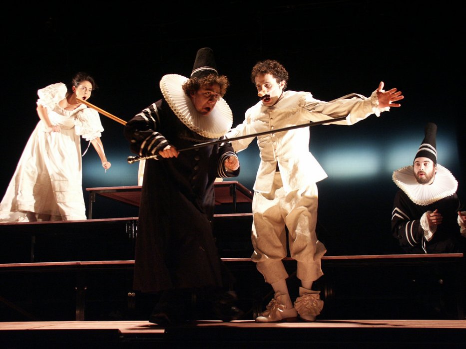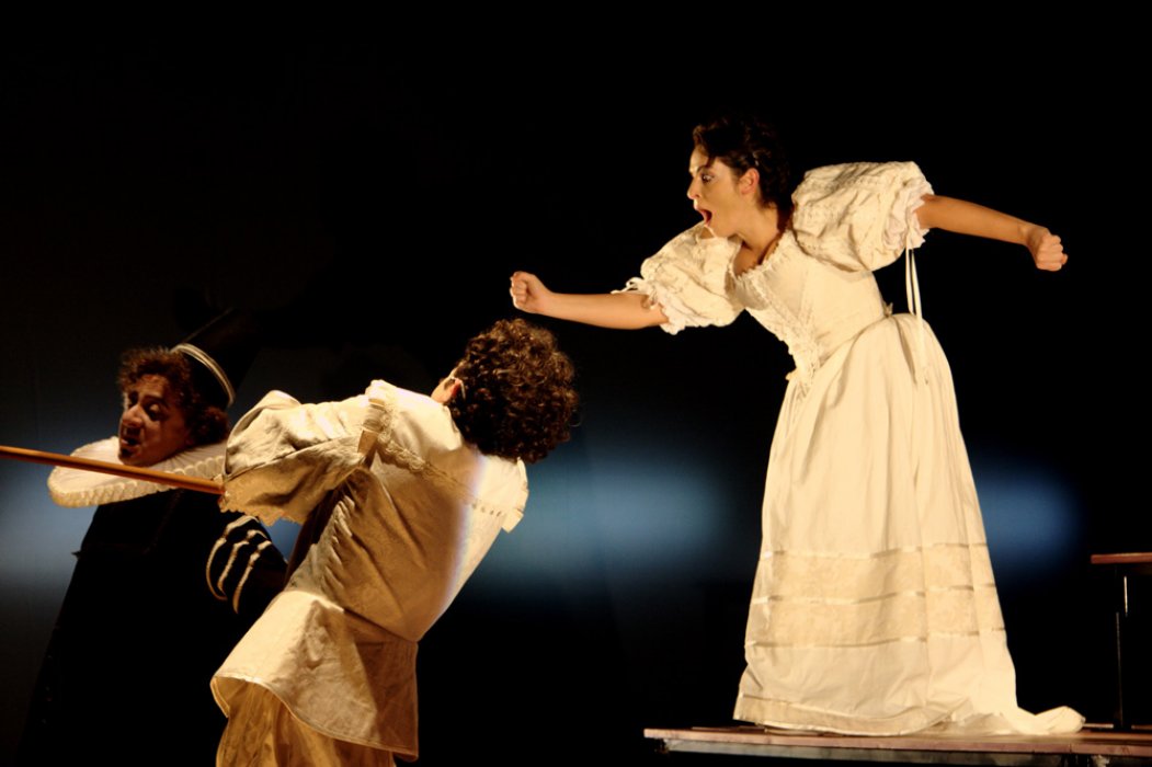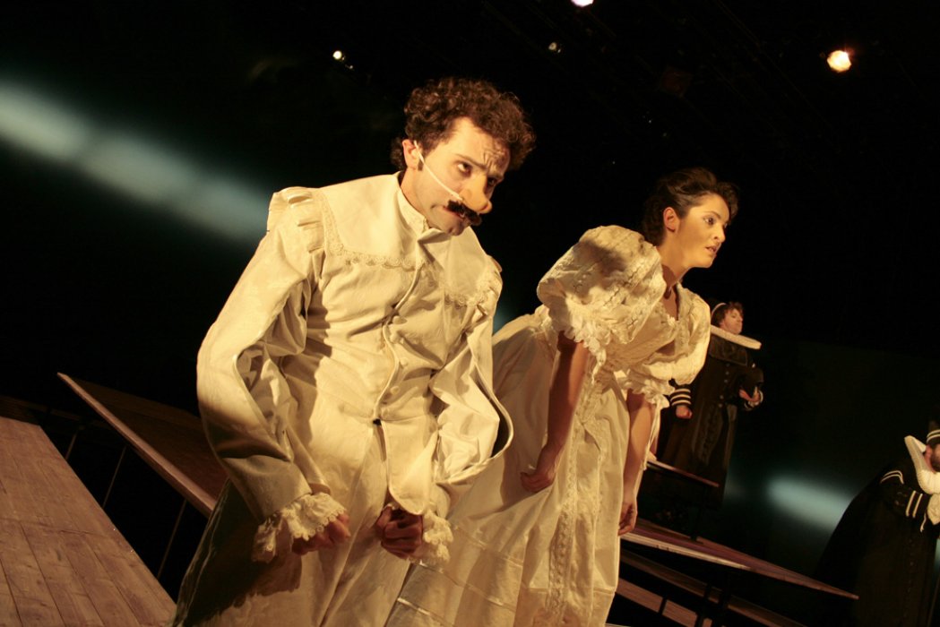Ma in questo allestimento del Teatro Kismet c’è molto di più: assieme al gioco della vita e della morte, nel controluce della paura del male, c’è anche il gioco tutto molieriano del teatro, con le sue farse, i suoi inganni e travestimenti.