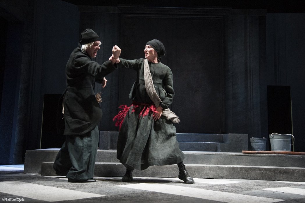 Lo fa attraverso un meccanismo teatrale modernissimo, una specie di farsa dove molto si ride, ma che in maniera paradossale e insieme umanissima ci fa scoprire senza falso pudore, tra sghignazzi e continui doppi sensi saporosissimi, i meccanismi perversi dell’irragionevolezza umana. Lo fa additando senza ipocrisia, con un linguaggio diretto e divertentissimo, i vizi, le perversioni, il malcostume, la corruzione, le debolezze che ci portano da millenni a ritenere la violenza l’unico mezzo per risolvere i conflitti, per appianare le liti. Lo fa mettendo bene in chiaro che questo meccanismo opera sempre e a qualsiasi livello: sia quello politico e territoriale, sia su ogni altro ambito della vita degli esseri umani, con l’unica conseguenza della sottomissione del più debole. Debole ovviamente solo in termini di forza fisica, di risorse materiali da mettere in campo, e non certo di intelligenza, di cultura, di sensibilità.