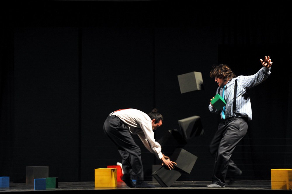 locandinaQuesta è la storia dell’incontro di Uno e L’Altro e del loro ingresso in un mondo fatto unicamente di cubi. Mentre L’Altro, intuendo le potenzialità di questi solidi geometrici, riesce a trasformarli in tutto ciò che l’immaginazione gli suggerisce, giungendo addirittura a costruire con essi un mondo intero.