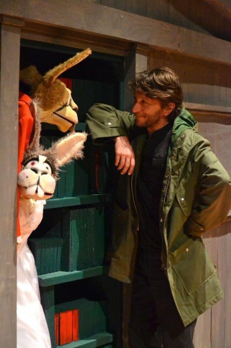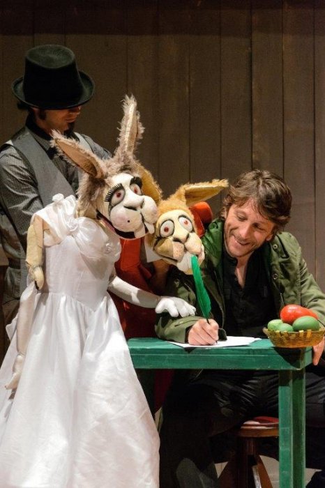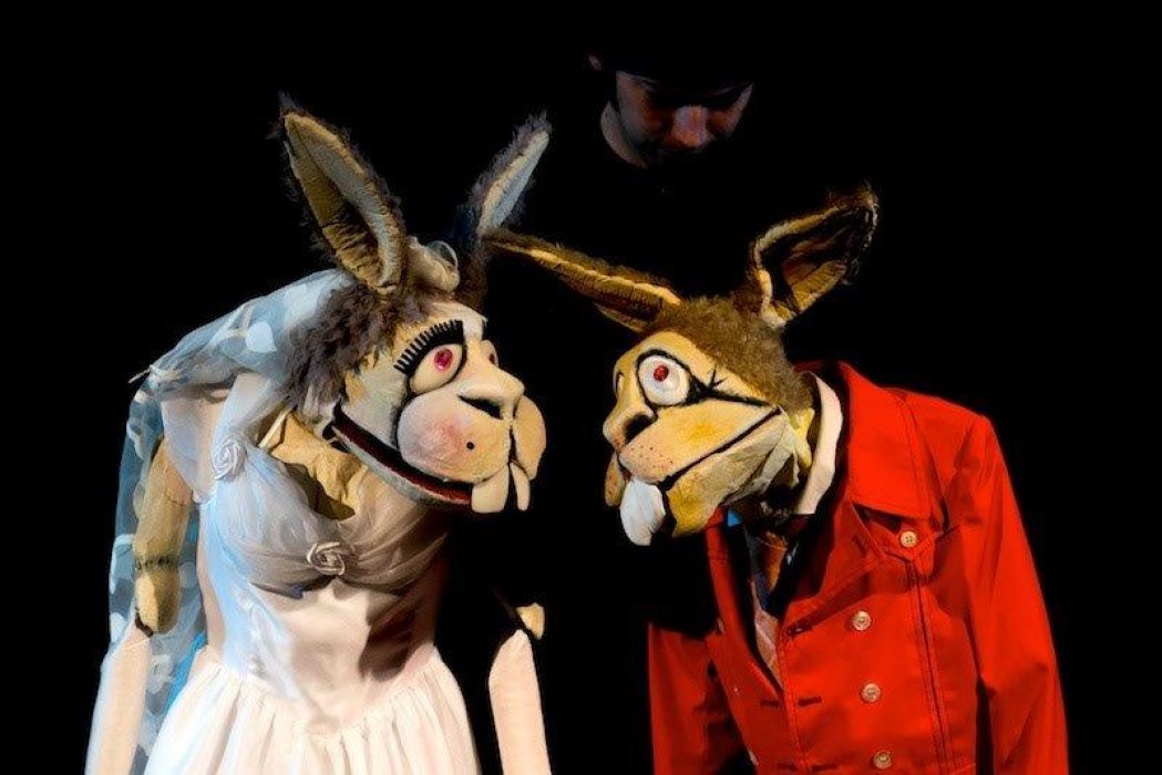 In scena un attore e dei muppet animati a vista, un dialogo tra elementi reali e simbolici, i personaggi di un sogno: un coniglio in giacca e cravatta ubriaco d’amore, la sua amata che danza in un candido abito da sposa, una volpe affamata che si muove in silenzio, come l’ombra nera di Zac uscita dal suo specchio.