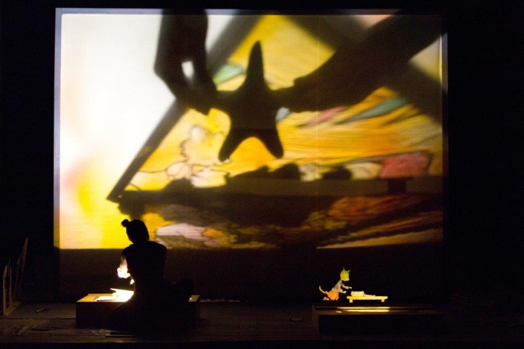 Questa leggerezza poetica, indubbia qualità di questa storia, è resa sulla scena da immagini d’ombra dai toni pastello, acquarellati, e da ritmi calmi e distesi, che donano un’atmosfera di pace e informano tutta l’azione scenica, anche la recitazione. L’attrice evoca la storia di Moun aiutandosi con tutto il repertorio di tecniche d’ombra proprio del linguaggio teatrale di Teatro Gioco Vita.
