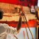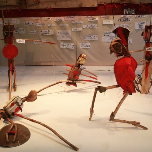 Omero Iliade – Il gioco della forza si collega alla poetica artistica che Panzuto abita da anni, vissuta tra sculture in movimento, figure azionate a vista, contrappesi, rivelazioni e trasformazione di oggetti.