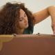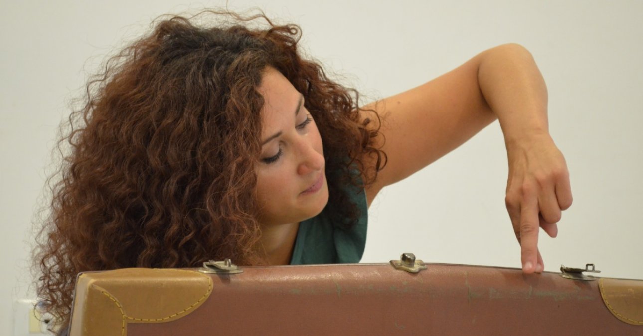 Un’attrice con una valigia che contiene un pennello, una conchiglia, una sveglia, un libro, delle bottigliette colorate e tanti altri oggetti: ecco gli ingredienti per creare le storie.