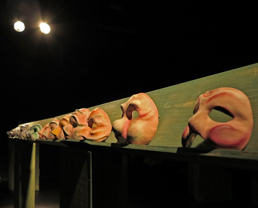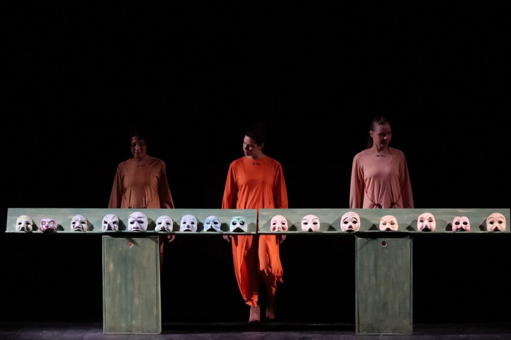 E in questo divertissement, che unisce sapidità e grazia leggera, c’è un’altra novità rispetto alle esecuzioni goldoniane tradizionali: tutti i personaggi portano la maschera, in contrasto con l’idea chiave della maturità dell’Autore, che all’opposto avrebbe voluto eliminare tutte le maschere… Ma grazie ad esse le attrici interpretano sedici personaggi diversi… E forse con queste loro nuove maschere danno corpo ad un’altra consapevolezza contemporanea: che non c’è limite al grottesco!
